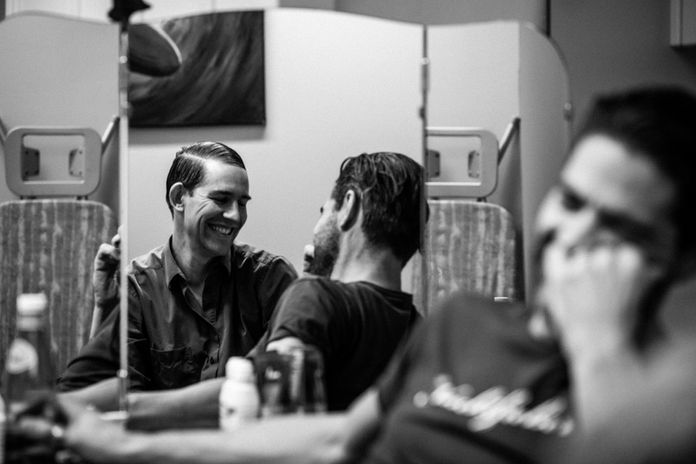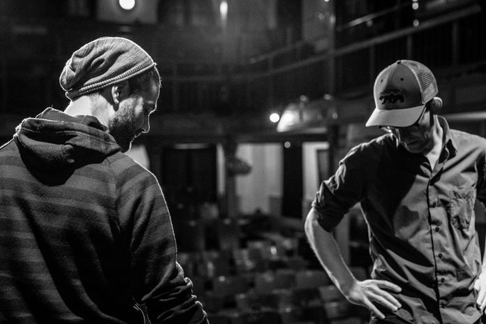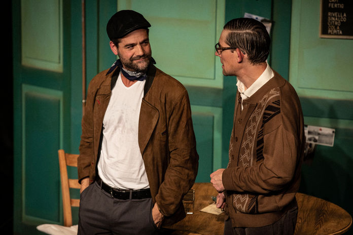 In den Figuren der beiden Mineure Role und Iseli spielen Strohmann-Kauz eine schaurig witzige und tragisch schräge Theaterproduktion nach einer Vorlage des Autors Pedro Lenz.